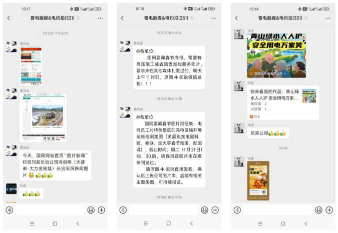 與山西攝影家協(xié)會、新華社、山西電視臺、人民攝影報等專業(yè)機(jī)構(gòu)、媒體合作,與文物、鄉(xiāng)村振興等政府部門對接,邀請利益相關(guān)方走進(jìn)保供和服務(wù)現(xiàn)場,深入鄉(xiāng)村振興、文物保護(hù)、非遺傳承一線舉辦聯(lián)合采風(fēng)活動。邀請主流媒體記者和基層通訊員聯(lián)合組建“電約拍”微信群,實時共享拍攝需求,暢通快速投稿、發(fā)稿渠道,利用主流媒體平臺提升影像作品傳播力引導(dǎo)力影響力公信力。